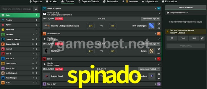 O spinado oferece uma grande seleção de opções de apostas em e-sports com probabilidades competitivas